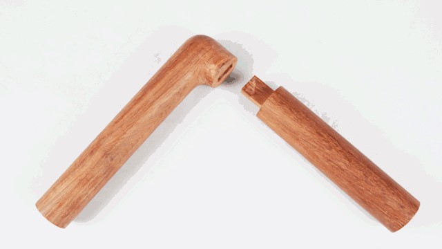 楔钉榫:是用来连接圆棍状又带弧形的家具部件,如圆形扶手的榫卯结构。虽然也是两根圆棍各去一半、作手掌式的搭接,但每片榫头的前端,都有一个台阶状的小直榫,可插入另一根上的凹槽中。制作圈椅的扶手、圆形家具都要用楔钉榫。